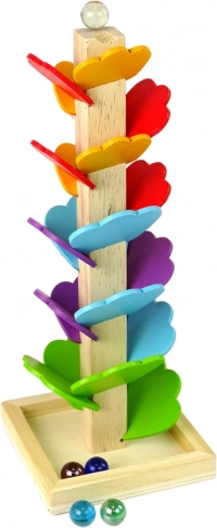 Zabawny i bezpieczny drewniany tor kulkowy w kształcie drzewa rozwija u dzieci małą motorykę, koordynację ręka–oko oraz rozpoznawanie kolorów. Połóż kulkę na szczycie i obserwuj, jak z przyjemnym dźwiękiem odbija się od kolorowych listków aż do podstawy. Zabawka wykonana jest z wysokiej jakości drewna i malowana bezpiecznymi, intensywnymi farbami.