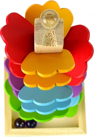 Umieść kulkę na szczycie i obserwuj, jak z delikatnym stukaniem odbija się od kolejnych listków aż do podstawy – zabawa, która wspiera śledzenie wzrokowe i koordynację.