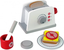 W opakowaniu, oprócz tostera, znajdują się także kromki chleba, nożyk, słoiczek dżemu, plaster sera oraz plaster pomidora do przygotowywania najsmaczniejszych kanapek. Drewniane wykonanie jest trwałe, przyjemne w dotyku i delikatne dla dziecięcych dłoni.