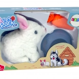 W skład zestawu wchodzą miseczka i plastikowa marchewka. Dzieci mogą „karmić” króliczka i naśladować opiekę nad prawdziwym zwierzątkiem.