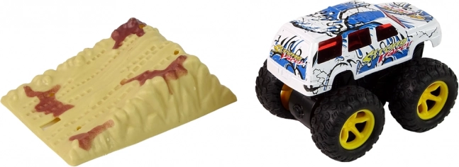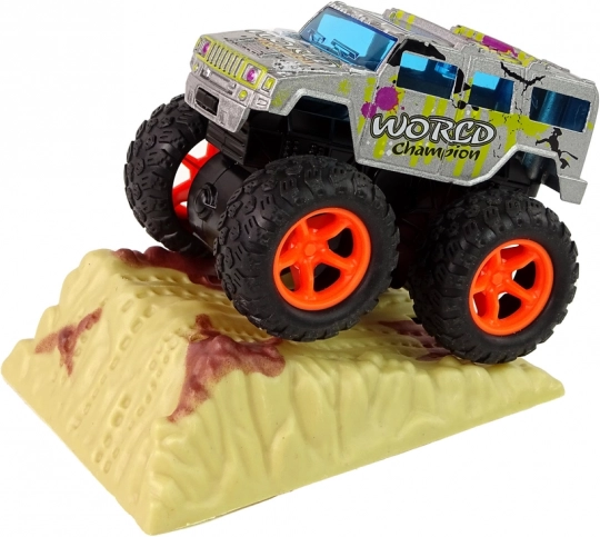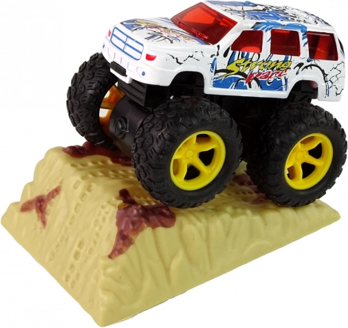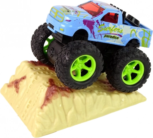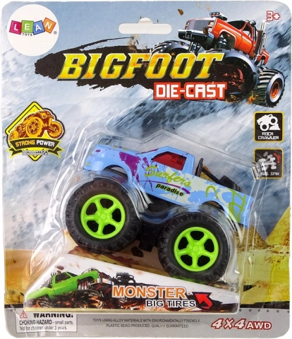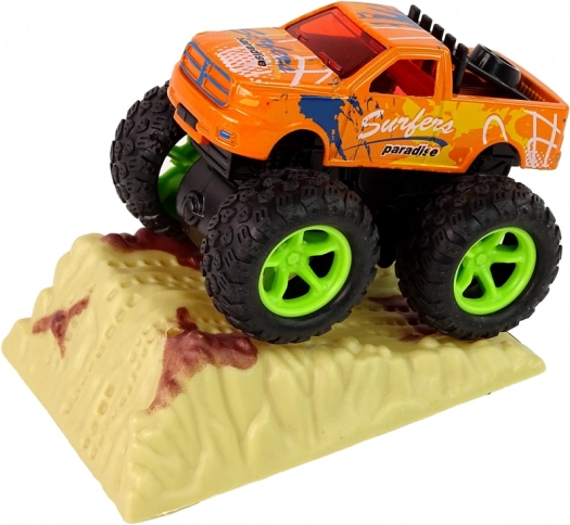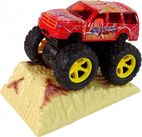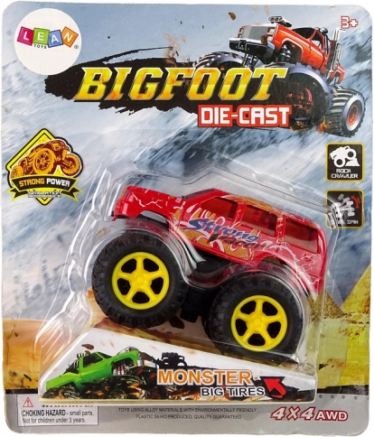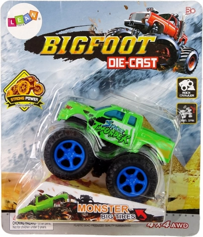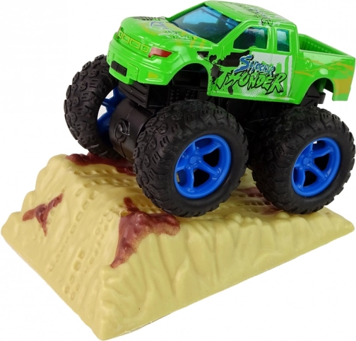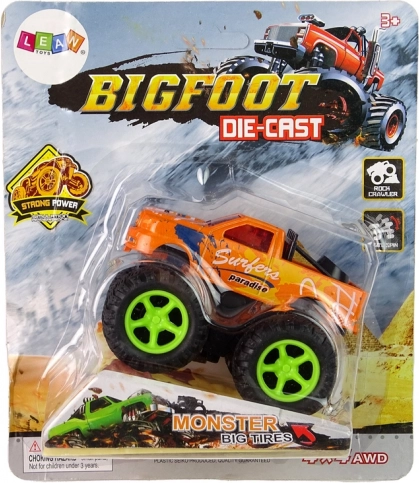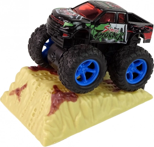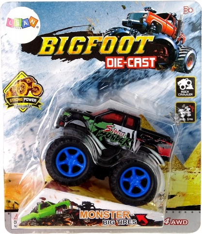 - napęd cierny, wystarczy pociągnąć i puścić, a monster truck pędzi z zawrotną prędkością