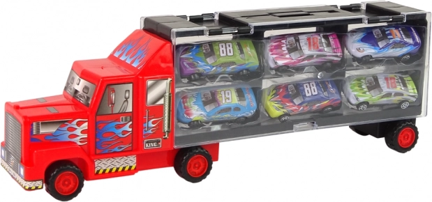 Ciężarówka wyposażona jest w przezroczyste przegródki do transportu samochodów wyścigowych. Łatwa do przenoszenia dzięki uchwytowi na górze.