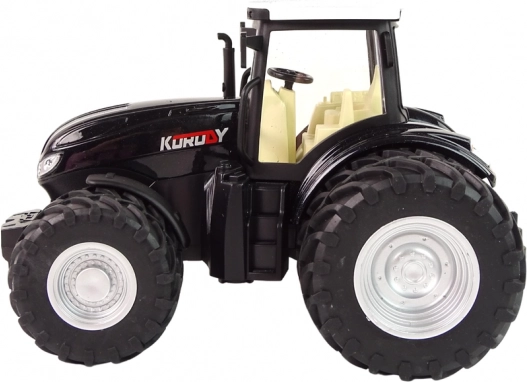 Ten czarny, zdalnie sterowany traktor zapewnia dzieciom autentyczne wrażenia z farmy. Kabina wiernie odwzorowuje prawdziwą maszynę, duże gumowe koła radzą sobie z gładkimi powierzchniami i domowymi przeszkodami, a solidna metalowa konstrukcja zwiększa odporność podczas codziennej zabawy. Przednie oświetlenie LED włącza się podczas jazdy, dodając realizmu.