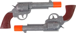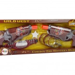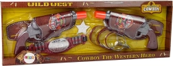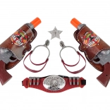 Ten kompletny zestaw kowbojski zamieni każde dziecko w odważnego stróża porządku. Po naciśnięciu spustu rewolwer wydaje realistyczny dźwięk wystrzału (zasilanie AG13), a pas z kaburami utrzymuje pistolety zawsze pod ręką. Bezpieczne pomarańczowe końcówki i wysokiej jakości plastik zapewniają beztroską zabawę w domu i na zewnątrz.