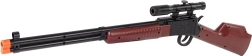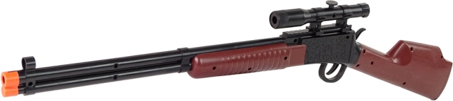 Imponujący karabin o długości 80 cm z przyrządami celowniczymi pomaga ćwiczyć koncentrację i wyobraźnię. Po naciśnięciu spustu rozlega się dźwięk strzału dla jeszcze większej autentyczności.