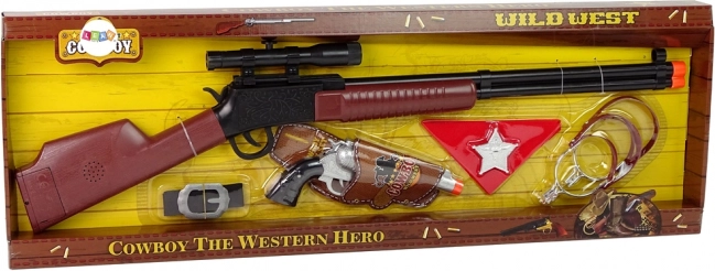 Przygotuj się na przygodę na Dzikim Zachodzie. Dziecięcy zestaw kowbojski zamieni małych bohaterów w szeryfa, który czuwa nad porządkiem. Duży karabin z przyrządami celowniczymi i kompaktowy rewolwer wydają realistyczne dźwięki strzału, dzięki czemu zabawa jest jeszcze ciekawsza – a przy tym bezpieczna dzięki wyraźnej pomarańczowej końcówce i lekkiej konstrukcji z trwałego tworzywa.
