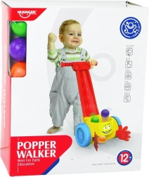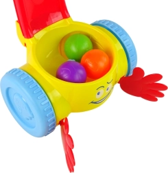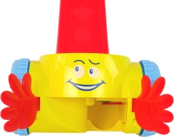 Ten kolorowy pchacz z uśmiechniętą buzią motywuje dzieci do chodzenia i aktywnej zabawy. Dziecko wrzuca piłeczkę do otworu w rączce, zabawka ją rozkręca, a piłeczka wyskakuje na podłogę – i można zbierać od nowa! Zabawa naturalnie rozwija motorykę dużą i małą, koordynację oko–ręka oraz rozwiązywanie prostych zadań.