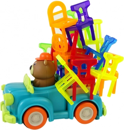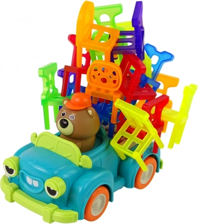 Zbuduj stabilną wieżę z mini krzesełek, podczas gdy autko jeździ w kółko – ruchomy cel dodaje grze emocji i zabawy. Każdy gracz dokłada jedno krzesełko, nie wolno jednak poruszać już ułożonych. Kto zburzy wieżę, przegrywa. Autko można przekierować obrotowym przełącznikiem na spodzie, aby wybrać poziom trudności.