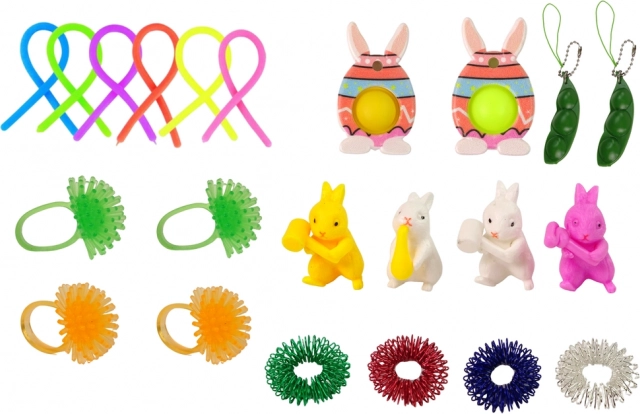 Spraw dzieciom radość wielkanocnym pakietem pomocy sensorycznych. Ten kolorowy zestaw oferuje aż 29 antystresowych zabawek fidget w wielkanocnym motywie, które można ściskać, rozciągać, kręcić i klikać. Wspierają motorykę małą, koordynację ręka–oko, kreatywność i koncentrację. Wykonane z bezpiecznych, nietoksycznych i trwałych materiałów, odpowiednie dla dzieci od 3 lat.