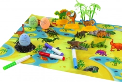 Stwórz mini prehistoryczny świat z matą i dekoracjami. Świetnie sprawdzi się na półce i jako scena do zabawy.