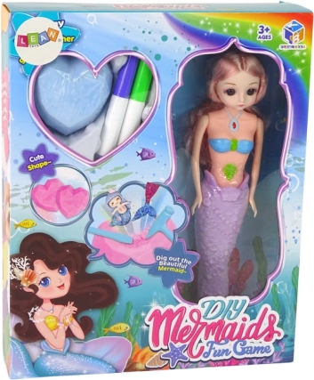Odkryj kreatywną zabawę z zestawem DIY z syreną! Dziecko może zdobić ogon specjalnymi flamastrami, czesać długie włosy syreny oraz wydobywać niespodzianki z dwóch kamyków w kształcie serca za pomocą dołączonego dłuta. Po zanurzeniu w wodzie do 3 godzin kolory można zmyć i malować ponownie.
