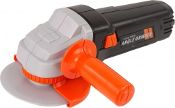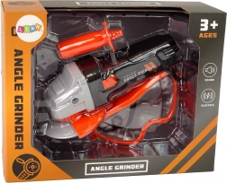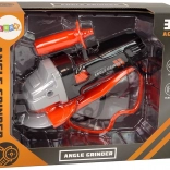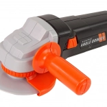 W skład zestawu wchodzi szlifierka na baterie o autentycznym czarno-pomarańczowym designie. Po przesunięciu przycisku dysk się obraca, tak jak w prawdziwej szlifierce. Do zapewnienia bezpieczeństwa podczas zabawy dostępne są ochronne okulary.