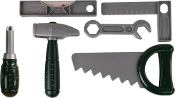 Wśród narzędzi znajdują się młotek, piły, śrubokręt i inne, co umożliwia dzieciom poznawanie i uczenie się nazw i użycia narzędzi. Wszystko jest przechowywane w praktycznej walizce, którą można łatwo przenosić.