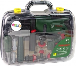 Zapewnij swoim dzieciom zabawne doświadczenie z naszym dziecięcym zestawem narzędzi. Zawiera realistyczną plastikową wiertarkę z funkcją obrotu i autentycznym dźwiękiem, co sprawi radość każdemu małemu majsterkowiczowi. Wszystkie narzędzia i akcesoria są składowane w praktycznej przezroczystej plastikowej walizeczce, co ułatwia przechowywanie i przenoszenie.