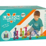 Całość zapakowana w plastikowy łącznik, dzięki czemu kręgle można zawsze układać w stos. Elementy w zestawie posiadają certyfikat CE, co oznacza, że są bezpieczną zabawką dla maluchów. Zabawka odpowiednia dla dzieci powyżej 6 lat.