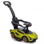 Stylowy dziecięcy jeździk inspirowany samochodami LAMBORGHINI oferuje bezpieczną jazdę dzięki prowadzącej rączce, pałąkowi ochronnemu i podnóżkowi. Lekka i stabilna konstrukcja jest idealna na pierwsze wycieczki oraz trening równowagi.