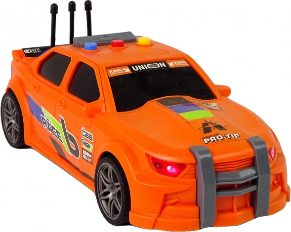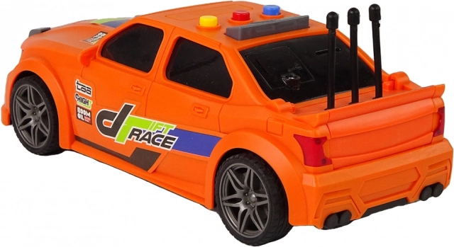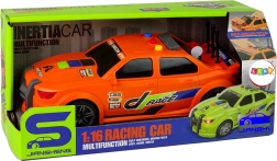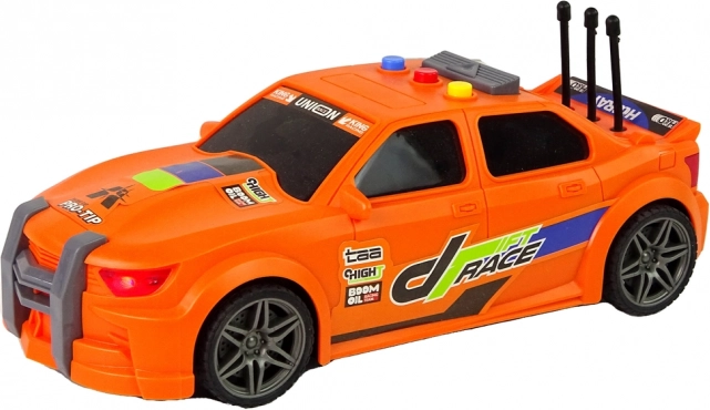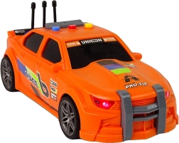 Pomarańczowy samochód wyścigowy z wyrazistymi nadrukami, sportowymi akcentami i starannie odwzorowanymi detalami przyciąga wzrok od pierwszego spojrzenia. Wytrzymały plastik wytrzyma częstą zabawę.
