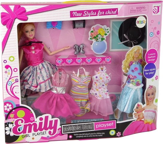 Lalka Emily ucieszy każdą małą stylistkę. Ma elegancki strój z różowym topem i rozkloszowaną, kwiatową spódnicą, które dopełniają czarne czółenka. Dzięki ruchomym stawom łatwo ustawisz ją w różnych pozach. Zestaw zawiera kilka sukienek i akcesoriów, więc każdego dnia może wyglądać inaczej.