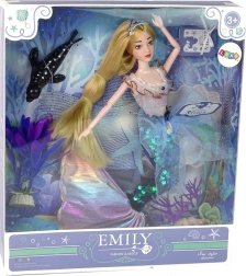 Lalka Emily zapewnia dzieciom mnóstwo twórczej zabawy. Jej lśniący ogon z mieniącymi się cekinami zachwyca od pierwszego wejrzenia, a elegancki falbankowy top podkreśla syreni styl. Po zdjęciu ogona stoi na nóżkach i jest gotowa do zabawy także poza podwodnym królestwem.
