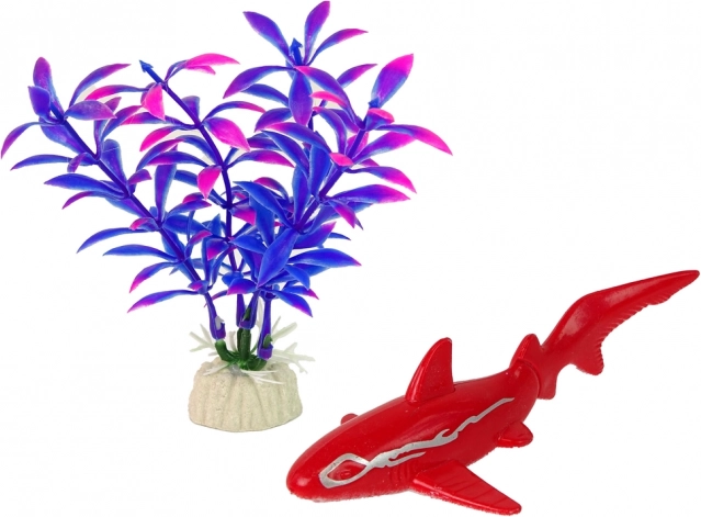 - Figurka czerwonego rekina, podwodna roślinka