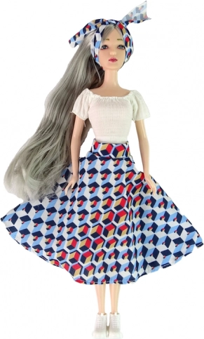 EMILY zachwyca nowoczesnym wyglądem, pięknymi szarymi włosami i dopasowanym strojem z opaską – gotowa na każdą modową przygodę.