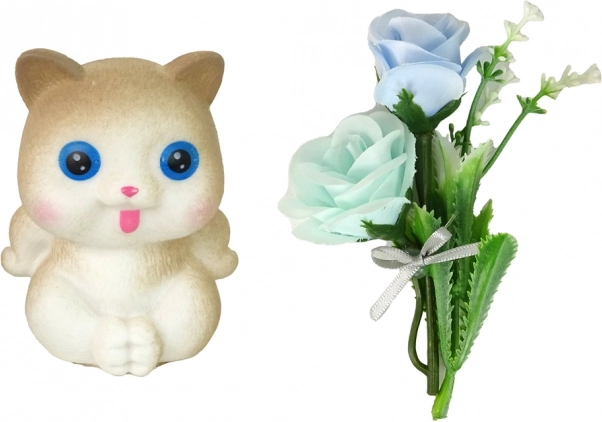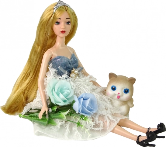 W skład opakowania wchodzi mięciutki kotek oraz dekoracyjne kwiaty, które poszerzają możliwości zabawy i czynią lalkę idealnym prezentem.