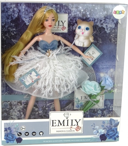 Wprowadź do dziecięcego pokoju odrobinę magii z lalką EMILY. Dzięki bogato zdobionej sukience, długim, możliwym do czesania włosom oraz urokliwym dodatkom dzieci łatwo stworzą własne modowe historie. Zestaw z kotkiem i kwiatami rozszerza możliwości zabawy i pobudza wyobraźnię.