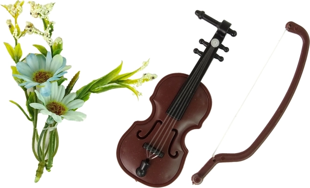 - Lalka, skrzypce, dekoracyjne kwiaty