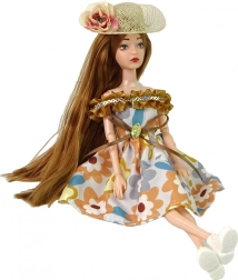 Urocza lalka Emily z długimi brązowymi włosami, zielonymi oczami i eleganckim beżowym kapeluszem zachwyci każde dziecko. Ma kwiatową sukienkę z kokardką i ozdobnym kamyczkiem oraz wygodne białe tenisówki. Idealna do kreatywnej zabawy, czesania i opowiadania historii. Świetny pomysł na prezent dla dzieci od 3 lat.
