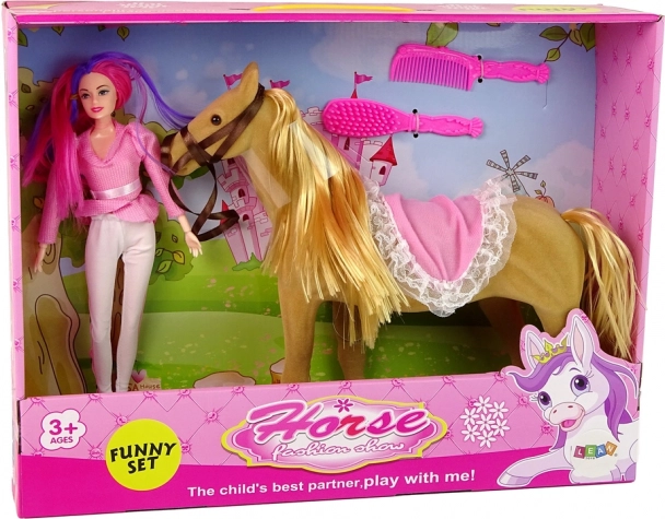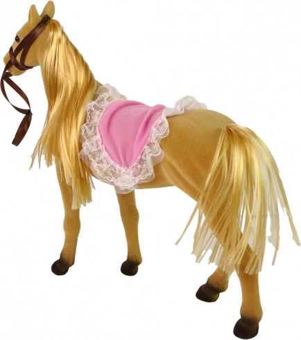 Koń wykonany jest z miękkiego i przyjemnego w dotyku materiału, wiernie naśladującego prawdziwy wygląd zwierzęcia. Zestaw zawiera różową szczotkę i grzebień do pielęgnacji długiej grzywy konia, co pozwala dzieciom rozwijać opiekuńczość i odpowiedzialność.