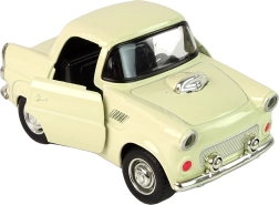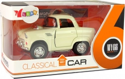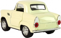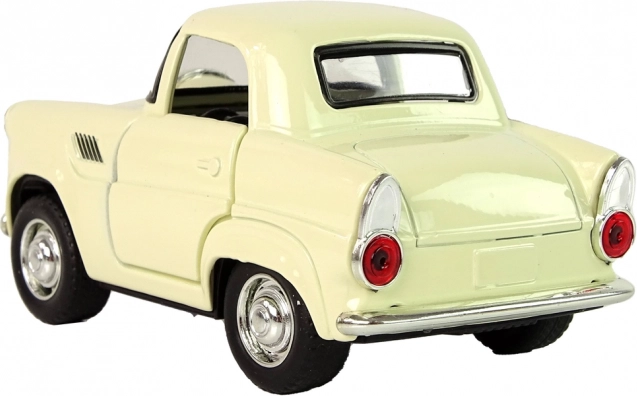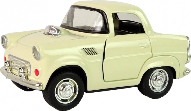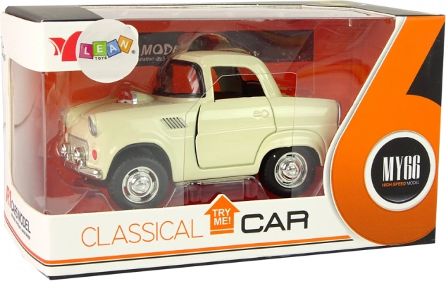 Klasyczne metalowe auto w beżowym kolorze z czarnymi i srebrnymi detalami dla realistycznego wyglądu.