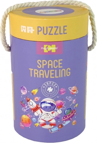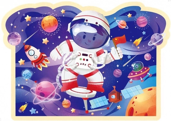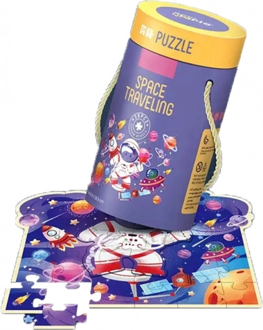 Ilustracje przedstawiają postać małego kosmonauty w otoczeniu pełnym planet, rakiet i satelitów, które wciągną dziecko w kolorową i szczegółową kosmiczną przygodę. Opakowanie w wygodnej, okrągłej tubie umożliwia łatwe przenoszenie i przechowywanie, idealne do użytku w domu i w podróży.