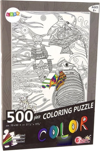 Puzzle do kolorowania oferują niezliczone twórcze możliwości. Zestaw zawiera 500 czarno-białych elementów puzzle oraz 6 pisaków, dzięki którym możesz dostosować obrazek do własnego gustu. Puzzle przedstawiają ryby w oceanie, otoczone roślinami.