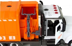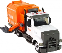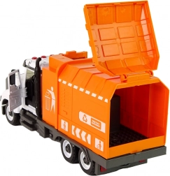 Boczny mechanizm podnoszący pozwala symulować prawdziwy wywóz odpadów – dzieci mogą podłączyć kosz i wysypać jego zawartość do zabudowy.