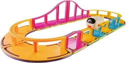 Odkryj kreatywny świat budowania z magnetycznymi klockami i stwórz własny podwieszany tor wyścigowy z 29 elementami. Kolorowe magnetyczne płytki i komponenty łatwo się łączą, wspierając motorykę małą, koordynację i wyobraźnię dzieci. W zestawie znajduje się mini samolot, który pędzi po złożonej trasie, a także książeczka z pomysłami na szybki start kreatywnej zabawy.
