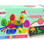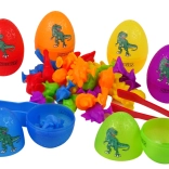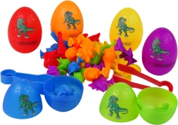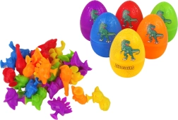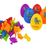 Zestaw zawiera sześć kolorowych jajek, w których ukryte są wesołe figurki dinozaurów z przyssawkami. Dzieci mogą otwierać jajka, odkrywać ich skarby i sortować małe dinozaury według kolorów lub gatunków. Figurki można dzięki przyssawkom mocować do różnych powierzchni, co wzbogaca i rozszerza możliwości zabawy oraz rozwija dziecięcą kreatywność.