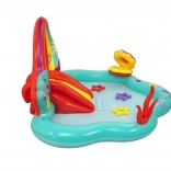 Wykonane z wysokiej jakości materiału winylowego, plac zabaw jest zaprojektowany do długotrwałego użytkowania. Miękka zjeżdżalnia i fontanna wodna zapewniają mnóstwo frajdy i bezpieczeństwa dla małych dzieci.