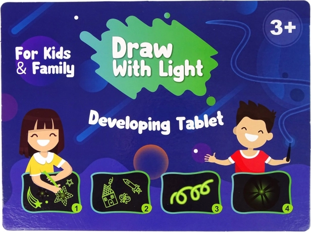 Fluorescencyjna świetlna tablica do rysowania oferuje niekończące się możliwości kreatywnej zabawy. Wystarczy rysować na tablicy, zgasić światła i za pomocą specjalnego długopisu zobaczyć swoje dzieło w zupełnie nowym świetle. Twórz magiczne i kolorowe rysunki, które rozświetlą mrok i zachwycą każdego.