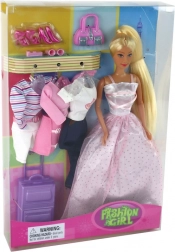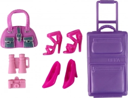 W zestawie znajdziesz dwa stylowe komplety ubrań: różową sukienkę z klamerkami oraz granatowe spodnie z białym topem. Dzięki różnorodnym możliwościom modowym i akcesoriom, w tym walizeczce, czółenkom i innym dodatkom, dzieci mogą eksplorować świat mody.
