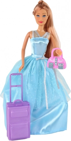 Lalka z akcesoriami i zestawem podróżnym to idealny prezent dla dzieci, które kochają zabawę lalkami i tworzenie różnorodnych historii. Lalka ma długie, lśniące włosy, które można układać na wiele sposobów, co pozwala dzieciom zostać fryzjerami swoich marzeń. Dodatkowo ubrana jest w olśniewającą niebieską balową suknię, która czyni z niej prawdziwą księżniczkę i stanowi doskonałą podstawę do niezliczonych opowieści i przygód.