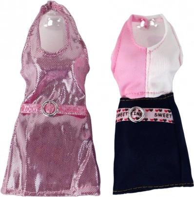 Dwie dodatkowe sukienki — jedna z połyskującą powierzchnią, druga z napisem 'SWEET' — oferują nieskończone możliwości modowych eksperymentów.