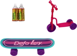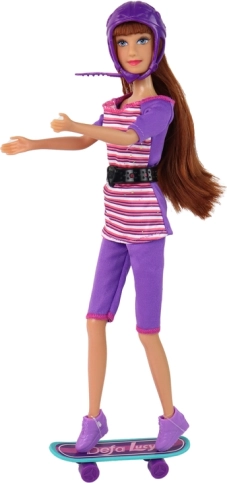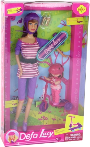 Przedstawiamy zestaw lalek, który zapewnia kreatywne i interaktywne doświadczenia dla dzieci. Ta kolorowa kolekcja zawiera dwie lalki: większą z fioletowym kaskiem oraz mniejszą, dziecięcą lalkę z różowym kaskiem. Świetnym uzupełnieniem są różowa hulajnoga i turkusowa deskorolka. Dzieci mogą spędzać godziny na tworzeniu unikalnych historii i scenariuszy.