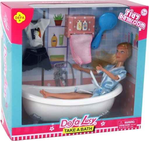 Ten zestaw kąpielowy oferuje wszystko, czego dzieci potrzebują do realistycznej zabawy: elegancką białą wannę na nóżkach, lalkę z długimi blond włosami, które łatwo się czesze, oraz szereg akcesoriów do pielęgnacji i stylu. Niebieski szlafrok dodaje lalce wygody i szyku, dzięki czemu jest gotowa na relaks i zabawę.