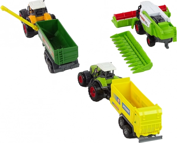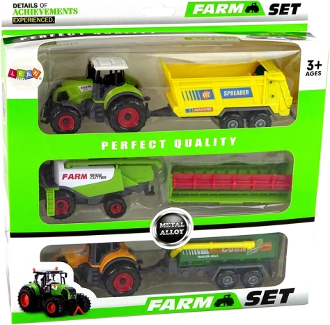 Zestaw oferuje wszystko dla małego rolnika: dwa traktory z różnymi przyczepami oraz funkcjonalny kombajn. Każdy element zaprojektowano tak, aby wiernie odwzorowywać prawdziwe maszyny rolnicze – od kształtu po kolorystykę. Łatwe manewrowanie i kompatybilne elementy zaczepu pozwalają szybko zmieniać konfiguracje i tworzyć nowe scenariusze zabawy.
