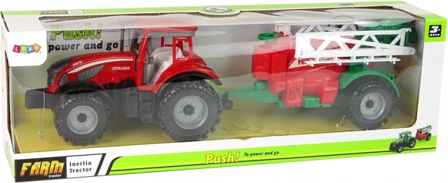 Ten czerwony traktor z opryskiwaczem zapewnia dzieciom autentyczne doświadczenie pracy na polu. Dzięki napędowi inercyjnemu pojazd po popchnięciu sam jedzie, a długie białe ramię opryskiwacza nadaje zabawie realistyczny wymiar. Opryskiwacz można łatwo odczepić, zmieniając scenariusze zabawy według wyobraźni.