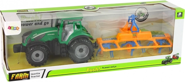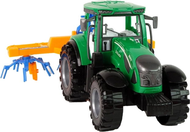 Odkryj zabawny i edukacyjny zestaw dla małych rolników: zielony traktor z grabicą i napędem ciernym do jazdy do przodu i do tyłu. Solidna plastikowa konstrukcja, realistyczne wykonanie oraz bezpieczne materiały ucieszą dzieci i rodziców. W zestawie znajduje się odłączana grabica do autentycznych zabaw rolniczych i rozwijania wyobraźni. Odpowiedni dla dzieci od 3 lat.