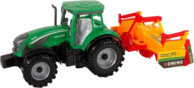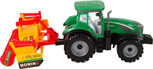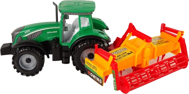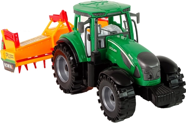 Ten szczegółowo wykonany traktor w zielonym kolorze z podłączanym pomarańczowo-czerwonym kultywatorem zapewnia dzieciom autentyczne wrażenia z farmy. Realistyczne opony, otwarta kabina i funkcjonalne akcesoria wspierają kreatywną zabawę i rozwój wyobraźni.