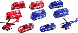 Ten uniwersalny zestaw dostarcza kompletny zespół ratunkowy – 5 policyjnych i 5 strażackich pojazdów, w tym helikoptery. Kompaktowe wymiary autek ułatwiają chwytanie i sterowanie oraz wspierają realistyczną zabawę w domu i w podróży.