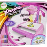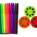 Dzięki szufladzie na przechowywanie łatwo jest utrzymać miejsce do twórczości w porządku i mieć wszystkie potrzebne narzędzia w zasięgu ręki. Produkt jest wyposażony w 12 kolorowych markerów i 3 dyski z różnorodnymi szablonami obrazków.