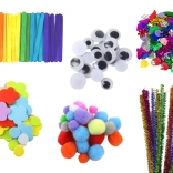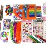 Zestaw zawiera bogaty wybór materiałów, w tym kolorowe druciki, błyszczące kleje i ozdobne naklejki do nieskończonych kreatywnych projektów.
